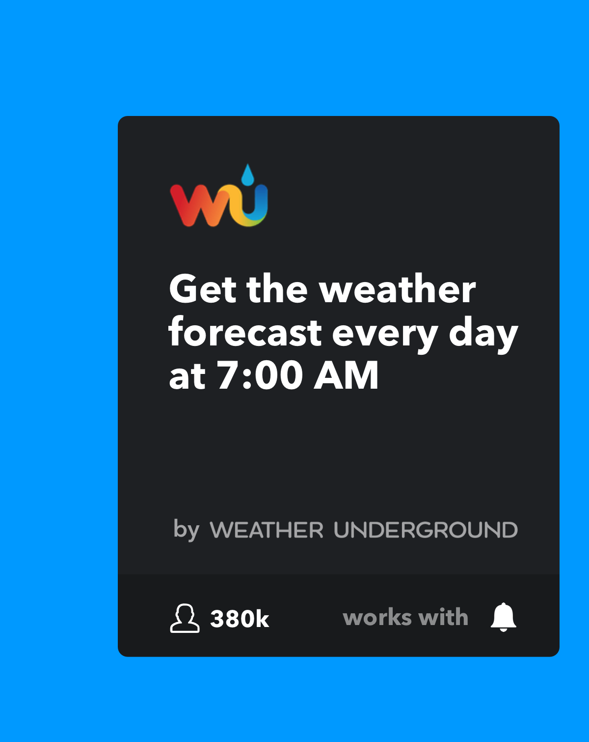 <a href="https://links.ifttt.com/wf/click?upn=7WQCkQw8pPqM25Y2uVqvquAHl30ZEzMZWNsZvPrub9-2FOHUXVaEN37NDdbdHi8NARKo4Ku-2FzStCahvYVGLweyICW-2FbRtOG6Td4QkYa3fJF-2FfYIaKzpa4Dj5-2Fm8JIyt6p3l6VsK2-2Fp7JqvCWqy4Wy6hcsKSBzCYijYjYUzZ8XixIk43-2F10vxEC7dj-2Byf4VoTQIkaSRitzOOzxKi7-2B46FoiYT3lK2QMlkdg-2FuA6ZE5dxcAi9UYqoKIkkgw03Y8VlMW6dcMNJR6OigtxHZ4UyiLg29g-2FqFkDCHHRt8YWgiRL9tIhz-2F-2BwBtFZx-2BgGgB9kGOhdHjza9dUgtXXnasb-2BrIWP-2BYsuR1mcf1U8xkEJn2pL5deFSYfOkTMBpbmkkRwwtrJ3byg9k6xmRoWJe9p3OzNHpcB37SzGC3dFZnzTWiy9kerw7pMxTYTXDkNvymoZtjfvkaVy0MSzG4TdmSOthADUsN69-2FXUOnVJPq5W22hZadrU-2Ft4aX5-2B2QhnQMPPi2La5bGw1aCy589lVVy0A2oUFYwxWq8lqVSZ9URoYGSuQ-2FPkmze0s3pVnexW04Sg-2FMGAxLtpg54Y1bCmba8yWEw3L9S7-2Bz83OqX3ymcQ6QT8qGOJwRAlkQ8q7Ibq-2Boc2XgFZSEO2FwqUgt2KaRysPTRkfSAB-2F7WUjI1EdsvRnjPjRDj-2FMosV3E-2ByB1TiJ3472WVKsJ32VgEBJwsBAeZPLYTMGlzg-3D-3D_PMhoZCN-2BJRMbwEhgwzA4AvhCOaQH5Z-2B6zPMj9MEjWC24jAH8g9tgMz6LSfYsOu5OSgocGb-2B-2BRpmwyMsab0DfxlpQFmwQjXGTrF0-2BXKK1DbXArb1EA0GwIUtIXXX17Z0YhC-2FmPGQNl4MCZjlNzovVAXMMDfx-2F3qWrrh9RVfeSvNAeJXSRzvEDiGXUwigpXATAZIIB0uAjSodjBvgBai6WlWniMREb9dVmM-2FvUCqoZJ1PMXrxlaNFtqgcWI4-2FuzJROgb-2FLwlkYTl2fZlBtA2Safg92Il5Q-2Fq85MyhGDpbk-2BAc1FHqiN6UFuiD6k0ZnFP-2FATWcnD1m1e5gIEU6PuntDAw-3D-3D" style="font-family:'AvenirNext',Avenir,'Helvetica Neue',Helvetica,Arial"><img alt="Get the weather forecast every day at 700 AM" src="https://d2huu43w4jjmdn.cloudfront.net/marketing/emails/2017+welcome+email/v01/LEFT+APPLET+WEATHER.png" border="0" title="Get the weather forecast every day at 7:00 AM" align="none" style="display:block; outline:none; text-decoration:none; margin-bottom:0px; clear:both; float:none; height:auto!important; max-width:100%!important; font-family:'AvenirNext',Avenir,'Helvetica Neue',Helvetica,Arial; border:0 none">