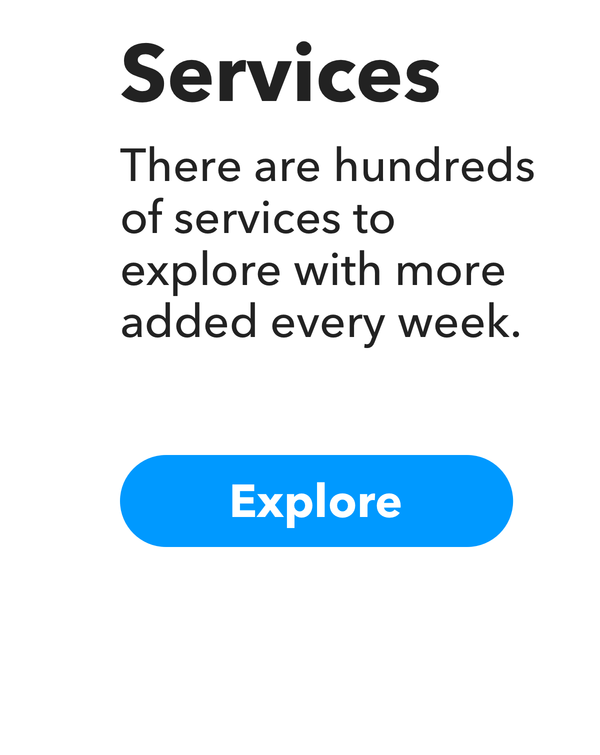 <a href="https://links.ifttt.com/wf/click?upn=7WQCkQw8pPqM25Y2uVqvquAHl30ZEzMZWNsZvPrub9-2FOHUXVaEN37NDdbdHi8NARKo4Ku-2FzStCahvYVGLweyICW-2FbRtOG6Td4QkYa3fJF-2FfYIaKzpa4Dj5-2Fm8JIyt6p3l6VsK2-2Fp7JqvCWqy4Wy6hcsKSBzCYijYjYUzZ8XixIk43-2F10vxEC7dj-2Byf4VoTQIpEAHo0LL3idxijuv2RnooC26vJP-2BtC7sn5wuaQ2ikw4EmN7A5K8yvJRpM62PxHR2drs6PZ8jsDAN3YLHRNXo30uhd17QXApaiJ30Hd-2BksyZtnCxbTQWw7DGsIr5gl1LFDKJk4F-2Buj1-2BAU8RsmaZkU5ALEQtsP5m-2BVA17PHvJ1hdkbWxxjSQw402ZN9Cg9pJozTQDf3XZjoLhUyWVHtluWk0eJygGuPvuGhNTsZSaB-2Br87wSNbDGIhyDmMFhHkDGS9yUM1X8HWALlmyn0HgJWmpM0fubbl7Dy3gUITcp3s6qqyC06TUYyqNOQoPjJKci7aOgCAVkWdk8-2B6jAaB9i133zmJeeUq8oUttO5lkpGc4dA1NF9SEzGn6yPqWZD89DG9iGyls5XOYGZ2wbhf8o17A-3D-3D_PMhoZCN-2BJRMbwEhgwzA4AvhCOaQH5Z-2B6zPMj9MEjWC24jAH8g9tgMz6LSfYsOu5OSgocGb-2B-2BRpmwyMsab0DfxlpQFmwQjXGTrF0-2BXKK1DbXArb1EA0GwIUtIXXX17Z0YhC-2FmPGQNl4MCZjlNzovVAXMMDfx-2F3qWrrh9RVfeSvNAeJXSRzvEDiGXUwigpXATAMgRlKnfVGFnUn8qsjr2mzR6s148BlAb6ujr-2BjID2e-2Bwq-2BrT1vMbBE-2BBW3t9wKiAZ4v1WaLwVRGy2H531PT4OyD4MHfv6Fe7jwpNTqdD0fGsFkwOc-2FqjrJwoOHT9Z-2B8egRLE0OX5vl3-2F8YU4As9hYxQ-3D-3D" style="font-family:'AvenirNext',Avenir,'Helvetica Neue',Helvetica,Arial"><img alt="Explore Services" src="https://d2huu43w4jjmdn.cloudfront.net/marketing/emails/2017+welcome+email/v01/SERVICES+COPY.png" border="0" title="Explore Services" align="none" style="display:block; outline:none; text-decoration:none; margin-bottom:0px; clear:both; float:none; height:auto!important; max-width:100%!important; font-family:'AvenirNext',Avenir,'Helvetica Neue',Helvetica,Arial; border:0 none">